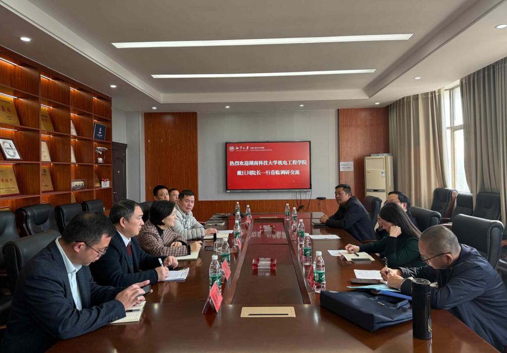 2025年11月14日上午,湖南科技大学机电工程黄色网站大全 院长戴巨川、党委书记夏莉、副书记杜鑫、副院长王宪、副院长陈冰一行来黄色网站大全 开展调研交流。黄色网站大全 院长周友行、党委书记李友芝、副书记邓建勇、副院长赵荣国、副院长左青松、副院长姜胜强参与座谈。